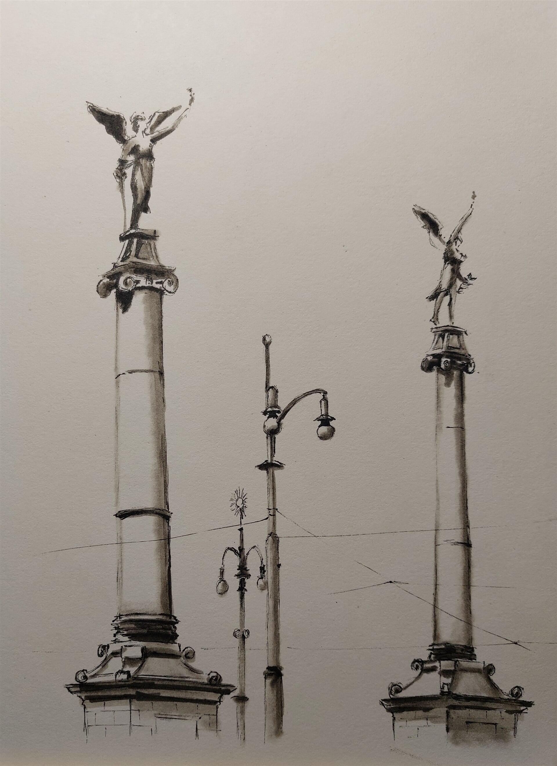 kresba "Čechův most, Praha", kresba perem, marker akvarelový papír