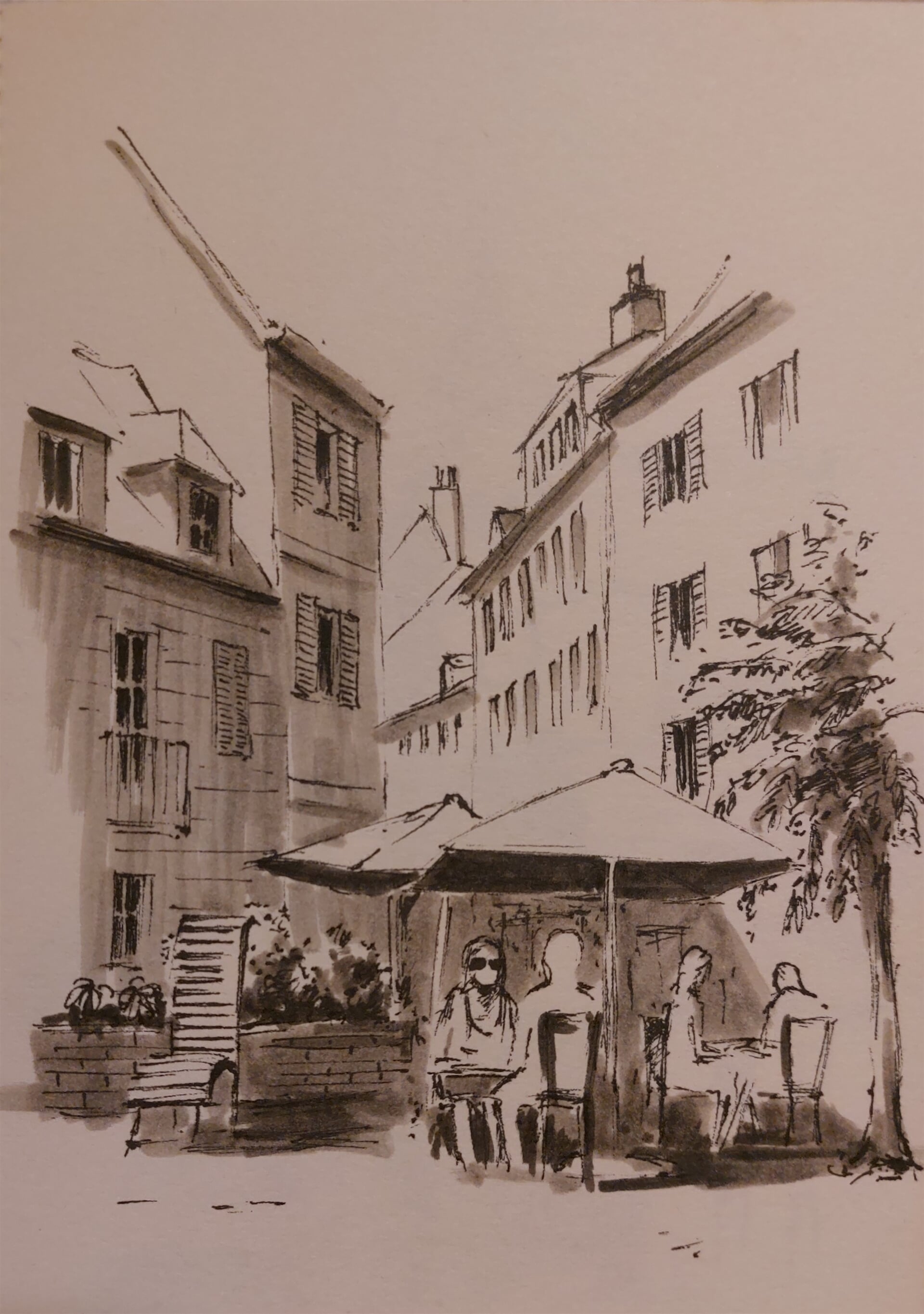 jiné "Dole, Burgundsko, Francie", kresba perem, marker papír