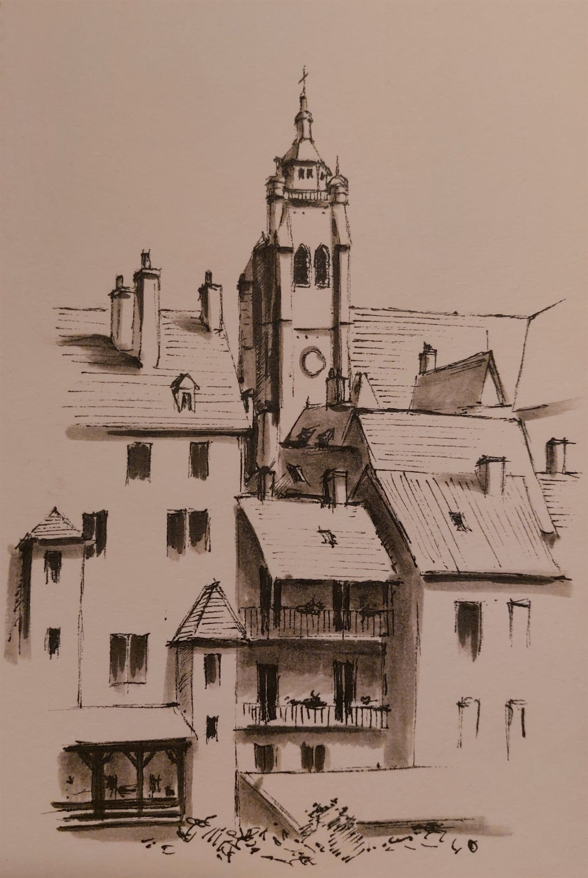 kresba "Dole, Burgundsko, Francie", kresba perem, marker papír