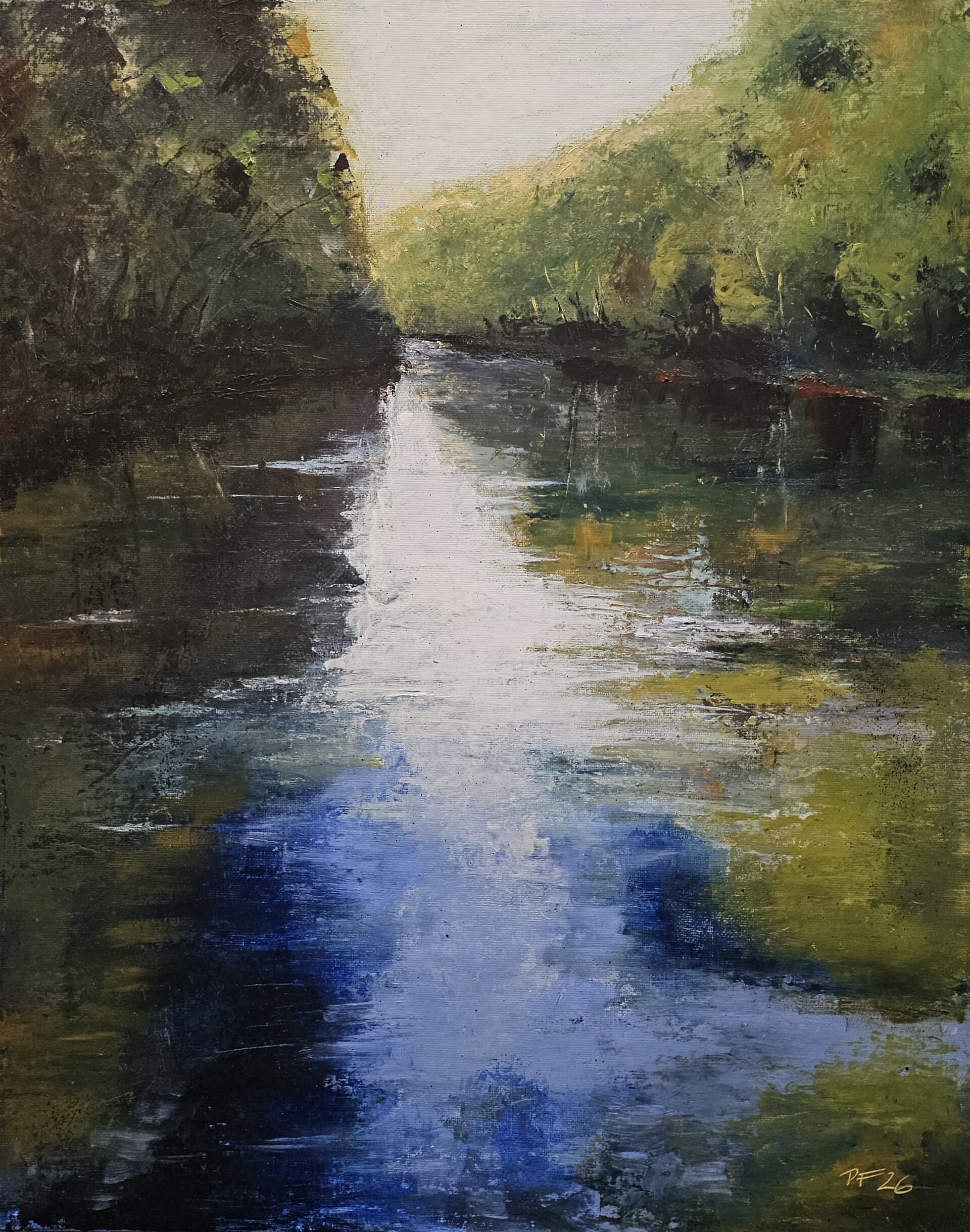 malba "Nová řeka u Staré Hlíny", olej plátno na desce