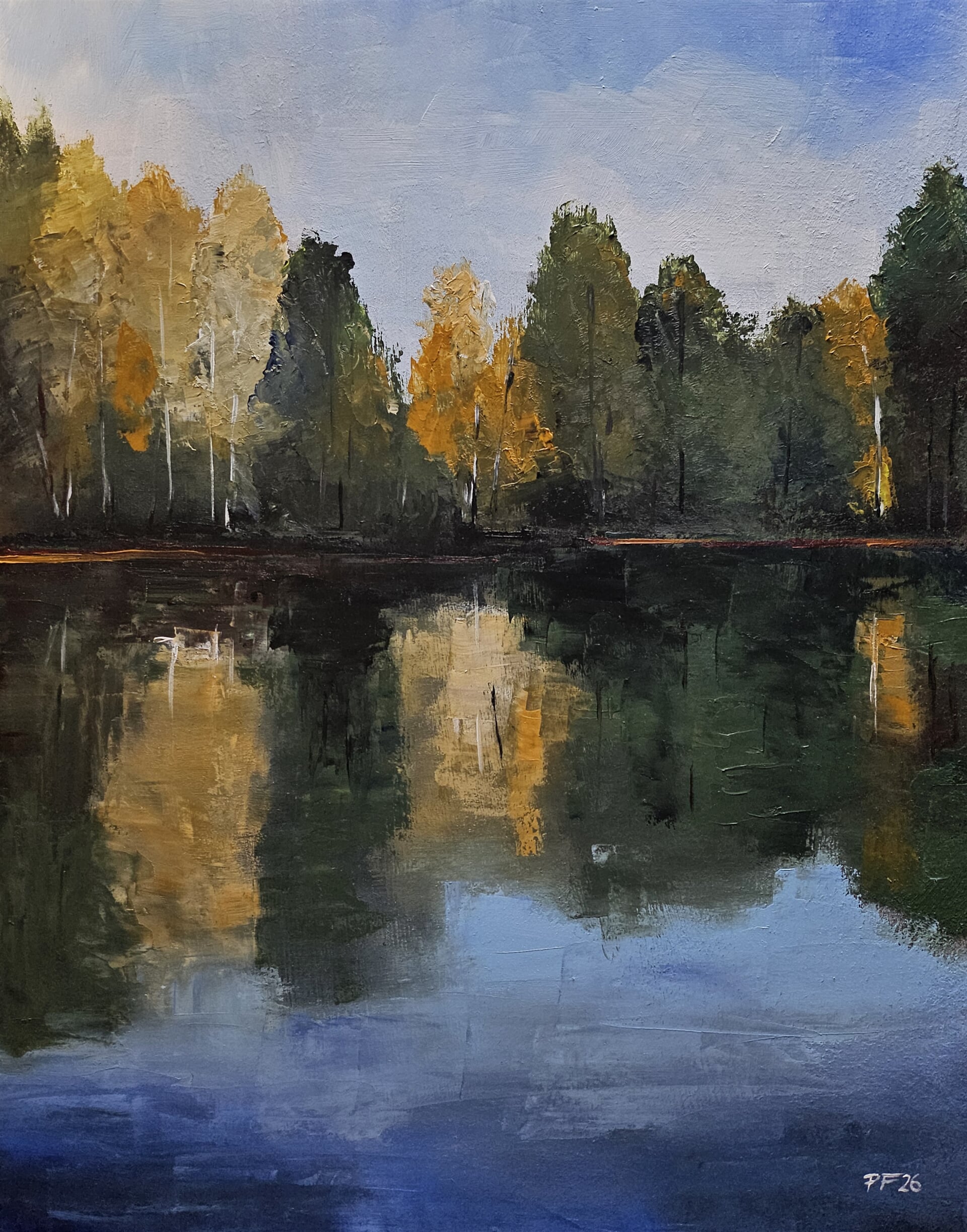 malba "Rybník Nový Kanclíř", olej sololit